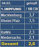3 verschiedene Impfstoffe mit unterschied-lichem Handling Gesamt 1.+ 2. 2.987.398 (v.83 Mio EW) Impfplan-Gipfel ( - doch schon). Zur Krisenbewältigung werden Impfstoff-Hersteller, MPs und Kanzlerin zusam- Beschluß: Wir machen einen Plan ! Das ist dringend erforderlich angesichts der nun 3 verschiedenen Seren. Durch-einander vorprogrammiert und Zweifel dass es klappt...??? |