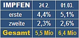 Hoffnung; Impfen, impfen, impfen... 1 Mio Dosen AstraZeneca = 6 Mio Impfungen in den Kühlschränken???? Gewaltige Mengen werden im März geliefert. Aber die Organisation klemmt. TESTEN Ziel: Erkennen v. Infektionen u, Unter-brechen der Kette. Die Vorbereitungen beginnen jetzt... (!!!!) 28.02. Umfragewerte sinken Söder literarisch... "Bedachtsam öffnen, mit Augenmaß und Kompaß. keinen Blindflug..." die MEDIEN tragen gewaltig zur Verunsi-cherung bei. 2 Tage vor der Konferenz wird bereits über das Ergebnis spekuliert. |