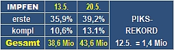 19.05. kumuliert / neu 86.665 / 284 Tote |