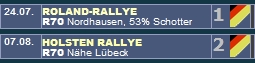 die IDEE... Aus der Not eine Tugend machen... 3 Wochen - 2 RALLYES + URLAUB 24.07. Roland-Rallye fahren, weiter z. Ostsee, 12 Tage Meer, dann... 07.08. Holsten-Rallye fahren dann wieder Meer - oder Heimreise |