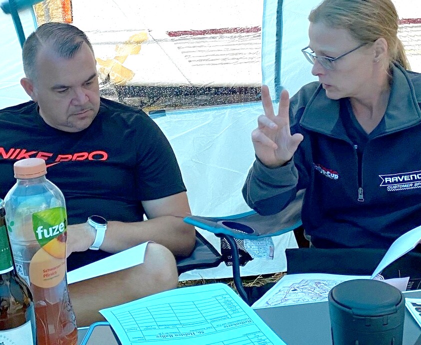 Freitag 06.08. CRASH-KURS Vielleicht ist dieses WP-Gewusel mit Auspfeilung in 3 Farben für unterschied-liche Streckenführung eine Nummer zu kompliziert für Neulinge ? Cristina Wegner bemühte sich um Dominik Beygang am Vorabend seiner allerersten Rallye... ZK-Zeiten, WP-Zeiten, Runden zählen, Schrieb erstellen... Dominik brummte der Schädel im 2-Takt-Sound. |