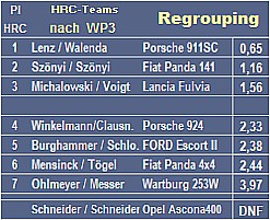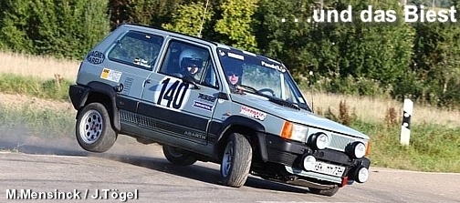 Die Fahrer waren über ihre Zeiten nur zum Teil informiert, da die I-Net-Abdeckung nicht immer gegeben war. Michalowski z.B. fuhr konstant ca. 0,5 sec zu spät durch d. Lichtschranken. Keine Korrektur-Chance... Mensinck /Tögel dagegen waren wie gewohnt auf der letzten Rille unterwegs, mussten aber schon in WP1 feststellen, dass beide Uhren nicht angelaufen waren. Dies bescherte dem Allrad-Panda zum Auftakt ein 1,48 sec Päckchen, von dem sie sich aber mit viel Spaß gut erholten. |