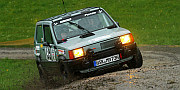 Die Affaire Panda Matthias Mensinck steht am Start der WP5, der Starter hat bereits mit dem Runterzählen begonnen, da öffnet Michael Szönyi die Seitentür: "Dein Motor verliert Wasser..." Der Starter ist bereits bei "fünf", die Wassertemperatur ist erhöht, aber... "...zwei, eins, ab!" Mathias startet notgedrungen in die Prüfung, fährt aber sofort rechts ran um die Sache zu untersuchen. |
