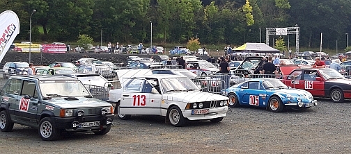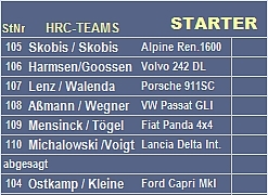 Prima organisiert war der Stellplatz für die Wagen. wenngleich das System der Platznummerierung sich irgendeiner Logik entzog. ...115, 105, 113, 109... ???? Die 6 HRC-Teams parkten weit verstreut. Erfreulich Bei der Startnummernvergabe lag nicht nur unsere Block-Liste (Mod-Jahr) zugrunde, sondern unser Block fuhr fast vorne. Nur drei lokale Größen starten vor der Skobis-Alpine. Das ist gut. |