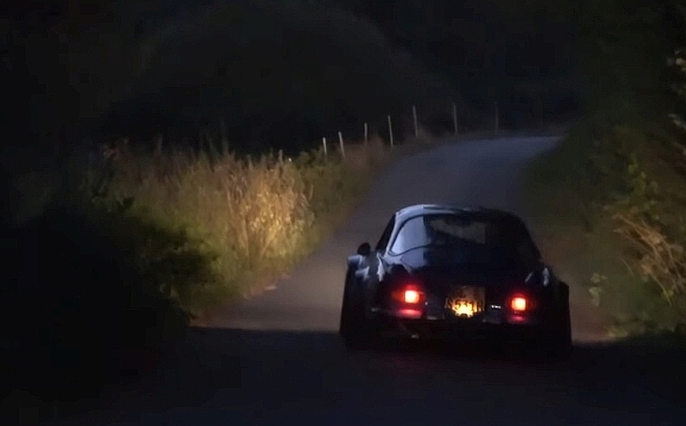 6 Halogen flammen auf. Der Motor dreht bei 7.000 "...fünf, vier, drei, zwei, eins - ab"... Die Alpine 1600 springt mit einem Satz durch die Lichtschranke -- 2.Gang - 3.Gang .... ...dann schluckt sie die Schwärze. |