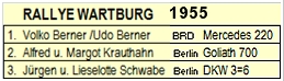 Bis 1960 gab es regen Sportverkehr und BRD-Fahrer waren stets vorne dabei -- zum Ärger der SED... 1960 Letztmals Rallye Wartburg mit Zulassung von BRD-Fahrern. 1961 Bau der Mauer (13.8.) und hermetische Schließung der Grenze. |
