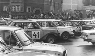 Der Eisenacher Markt wird zum Dreh- und Angelpunkt der Rallye Wartburg.Und diese wird alljährlich zum Pilgerziel tausender Rallyefans, die in erster Linie Wagen des eigenen Umfeldes sehen (Wartburg, Trabant, Skoda, Moskwitch und Lada...). Nur einzelne Polen, Bulgaren u. Tschechen kommen mit West-Wagen. Lauf Pokal f. Frieden u. Freundschaft. |