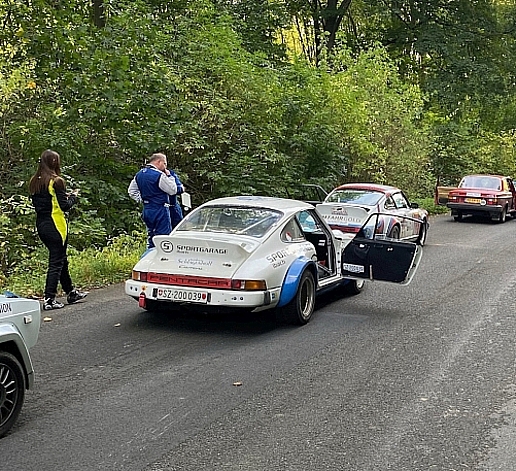 klappt sicher nur in Rallye gewohnten Orten -- wie Eisenach. Bei mir damals noch dreimal -- bis ich vorne war. Unser Gorny-Konvoi (Volvo, Lenz-Porsche, Gatani-Porsche u. Olmeyer-Lada) blieb aber ganz brav. Auch als auf der Landstraße ein Trecker und Gegen-verkehr erneut für Verzögerung sorgten... Sie machten sich wohl auch keine allzu großen Sorgen. "Wir haben ja Karenz..." |