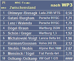 Wieder sitze ich am Rechner, qualme zu viel u. verfolge die live-Zeiten... Zur Halbzeit werden plötzlich Strafzeiten für d. Gorny-Konvoi eingerech-net. Logisch. Jetzt sind die Bordkarten der 1.Runde im RZ und können ausgewertet werden. |