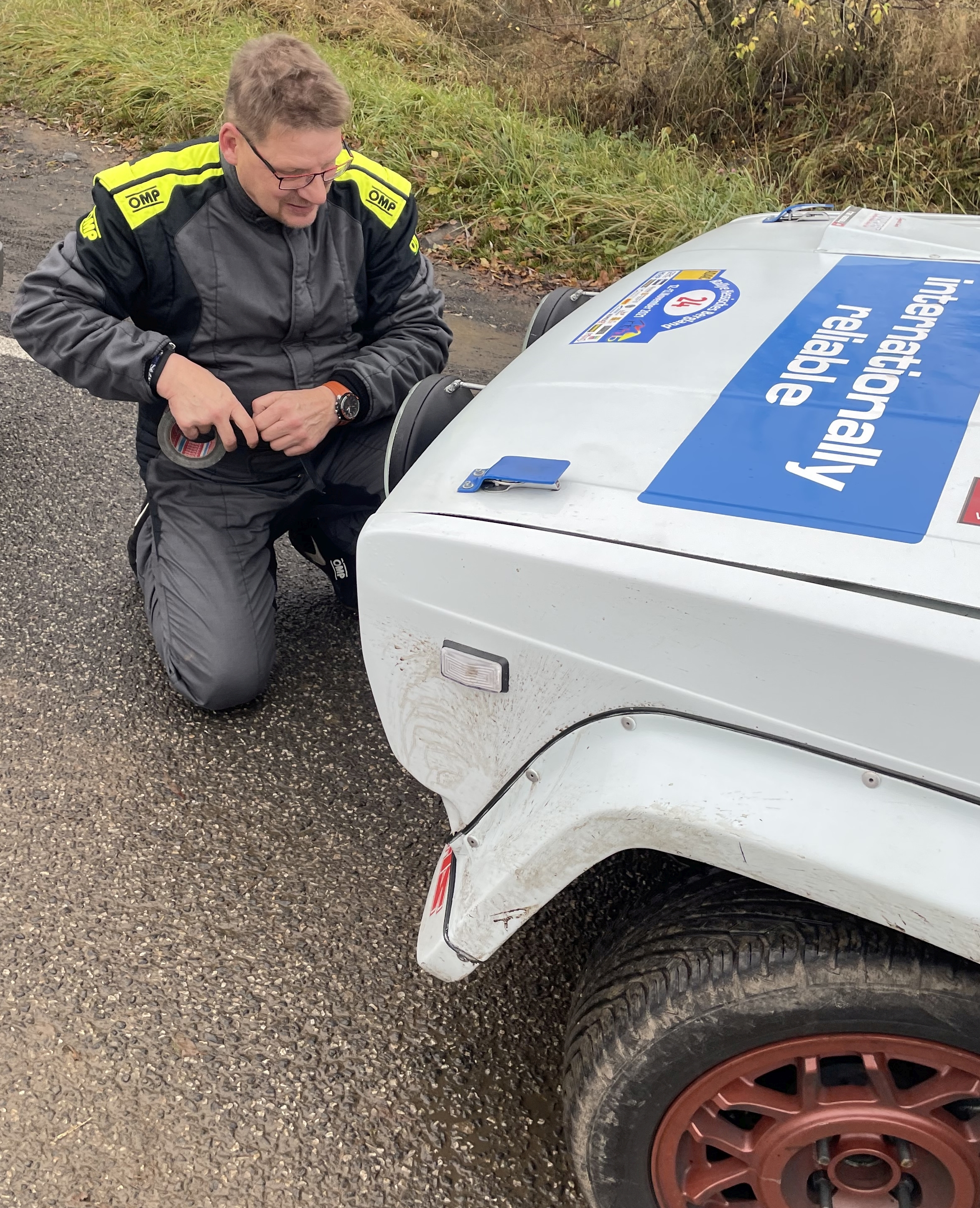 Es ist kalt -- und es wird noch kälter. Sven hat selbst für das Lenkrad ein wärmendes Mäntelchen und gegen Motor-Unterkühlung hat der Chef Klebeband... Sven hat M+S-Reifen angeschnallt, und das ist sehr vernunftig. |