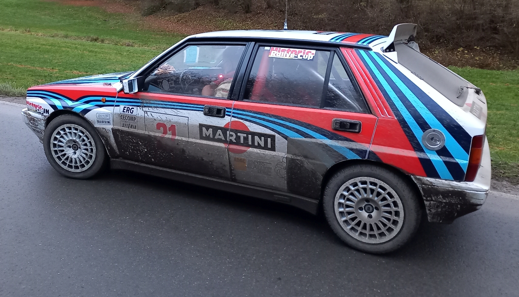 Bei Halbzeit wird es bereits dunkel. Die folgenden schnellen Asphalt-Prüfungen verlangen viel Licht am und im Auto... |