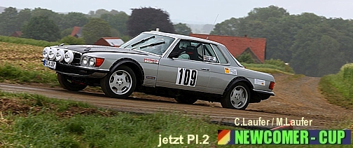 TEAM d. STUNDE Herbert Möller sind angesichts d. 1,35 sek in WP1 wohl leichte Zweifel gekommen. Aber Tanja Kiphenn - geb.WALENDA - hat die Rallye-Gene vom Papa geerbt. Die beiden kämpfen sich mit ständig ver- besserten Zeiten noch auf Platz 3 vor... |