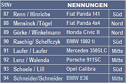 Der MC Weida ist dem ADMV treu geblieben. Und das ist gut. Denn schon beim Lesen der Ausschrei-bung werden die Unterschiede zur ADAC Retro-Rallye_Serie Nord deutlich. Kein Überholverbot, eine klare max-Zeit Regelung. und "Nicht zugelassen ist sichtbares Zubehör, das bis 2002 nicht verfügbar war wie z.B. LED-Zusatz-leuchten. " Das klingt wie bei uns. Allerdings ist der Historic-Trend auch am Osten der Republik nicht vorbei gegangen. Dies ist ein Lauf zum ADMV Histo-Rallye-Cup... HRC !? Schade, dass das Plagiatentum noch nicht mal vor unserem Namen halt macht. Prominenter Vertreter ist Alfred Gorny (Berlin), der bei der 49.Osterburg Rallye als eine Art Vielzweckwaffe auftrat: Teilnehmer-Suche, Start-Nr, F-Verb-Mann, Schiedsgericht, Presse Bericht... |