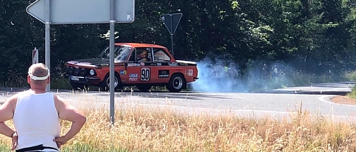 Ob das was da jetzt der Raschig-1802 rausbläst "normales Kolbenspiel" ist, oder der Hitze geschuldet, oder ... ?? In WP5 übernimmt der Porsche die Führung mit einer Serie von Super-Zeiten (0,02 / 0,01 / 0,02 ). Einmal allerdings kommen die ohnehin im Grenzbereich laufenden Herz-Kreislauf-Systeme in den roten Bereich... Walter verpaßt den Bremspunkt u. wählt den Notausgang (Foto r). |