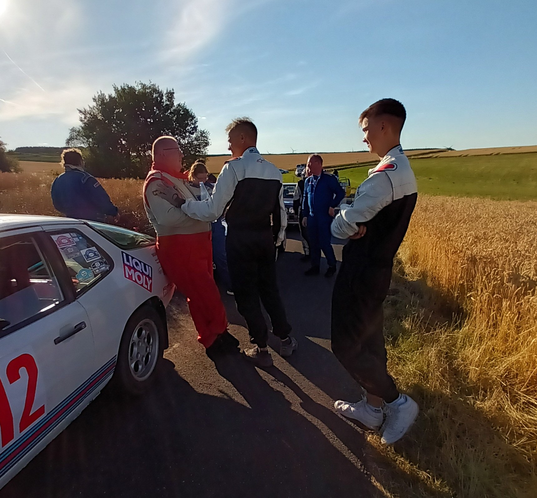 Christian Görke (im Ziel) Als wir dann den Aushang in Augen-schein nahmen, war Gerd immer noch auf Platz 1, was aber aufgrund der gelisteten WP-Zeiten rein rechnerisch nicht sein konnte. Es schien aber erst niemand aufzufallen, bis dann doch der Fahrtleiter den Taschenrechner bemühte und feststellte, dass hier etwas nicht passen konnte. Der Aushang wurde dann sofort eingezogen, um den augenschein-lichen Fehler zu korrigieren. |