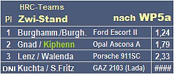Als einziges Team der TOP4 starten Walter Lenz /Erhald Walenda. Die beiden sind ihrer Favoriten-rolle stets gerecht geworden. 4 Starts -- 4 Siege. Diesmal ist alles anders. Die Burghammer-Brüder stürmen von Anfang an vorne weg, und -- Familiendrama im Haus Walenda -- Tochter Tanja fährt dem Papa seit WP1 vor der Nase herum auf Pl.2 Erstmals in diesem Jahr fährt der Porsche hinterher...