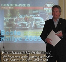 Von Anfang an werden die Probleme offen- kundig. Im Internet beginnt eine böse Hetz- Kampagne gegen uns. Wir werden als "illegal" diffamiert und Orga-Ltr. Rolf Blaschke soll mit Verleumdungen und persönlichen Angriffen weich gekocht werden... Neue Kollegen schreiben sich ein - und ziehen - nach Druck von Dritten - die Einschreibung kurz darauf wieder zurück. Das bestätigt die schlimmsten Befürchtungen. Andererseits sind da aber auch wieder 10 neue Teams. Das macht Mut - und ist natürlich auch eine Verpflichtung. Es ist dann aber gerade jenes Alt-Team, welches sich auf der JHV am lautesten für die Weiterführung der IG eingesetzt hat, das dann entgegen der eigenen Absichtserklärung "bei den anderen" fährt... Was soll's... Eine kleine Enttäuschung mehr. - Aber durchaus nicht sehr überraschend... Es wird problematisch, einen vernünftigen Terminplan zu erstellen. Auch dabei wird der Einfluß unserer Konkurrenten spürbar. Aber es gelingt, und wir merken, dass wir einige treue Partner an unserer Seite haben. Das tut gut... Arg problematisch ist jedoch die regionale Verteilung der Teams. Der Osten ist praktisch tot. Ein sympathisches Berliner Team... das war's. Auch der Süden zeigt nur Einzel-Flecken in der Landkarte. Und die liegen auch noch am äußersten Ende der Republik. Dass die AvD-Rallye Baden-Württemberg plötzlich abgesagt wird (Finanzen), tut weh. Neue Terminplanung. Aber eben auch weiterer Substanzverlust im Süden... |