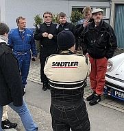 14 neue und 21 alte TEAMS - die sich kaum kennen - sind zusammen zu führen. Beim Saisonstart in Ulm ist niemand vom Vorstand dabei. M.Szönyi übernimmt die Organisation vor Ort (Foto rechts). Es ist etwas ernüchternd. Nur 10 Teams sind beim 1.Lauf am Start. Die Gründe sind unterschiedlich: Wagen nicht fertig, Krankheit, viel Arbeit, Urlaub, kein Beifahrer, der Terminplan... |