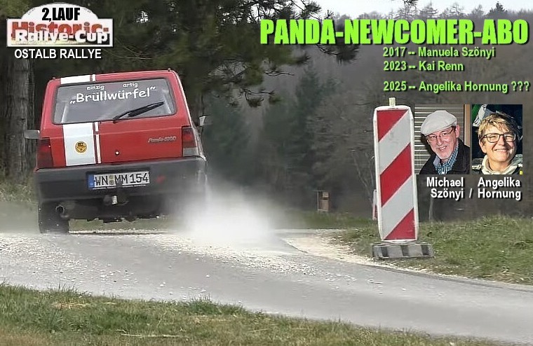 PANDA-Casting Eigentlich wollte die ihm angetraute Beifahrerin Manuela ein Comeback feiern. Michael Szönyi sorgte sich also nach Kräften um Sitzmöbel und Overall in adäquater Größe. Aber Manuela musste leider passen, und schlüfte stattdessen zurück in die Rolle der Team-Chefin. "Besorg' dir bitte einen anderen Co..." Micha rückte die Dauer-Kappe gerade und schritt mit gewohnter Dynamik zur Tat. Die Rallye Ulm 2025 wurde also zum Testlauf... (Platz 6) M.Szönyi / Angelika Hornung